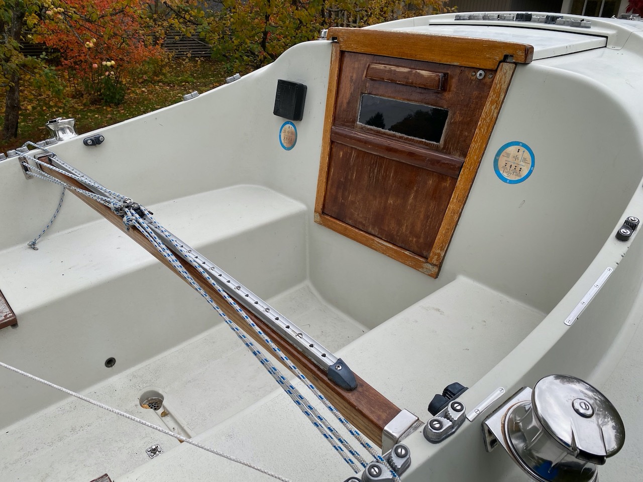 Millaisia ajatuksia kokeneemmissa herättää levangin pois jättäminen lähinnä retkikäytössä olevasta H-veneestä? Meillä on Hoopulissa perinteinen kannen tasossa oleva täysleveä levanki ja onhan se tehokas isopurjeen säätämisessä mutta onhan se myös tilasyöppö varsinkin silloin kun purjehtimassa on neljä täyskokoista ihmistä. Nykyisinhän jopa isoissa luksuspursissa (esim. Swan 58) levanki on jätetty kokonaan pois ja homma hoidetaan järeällä kikillä. Nyt kun olen joka tapauksessa uusimassa kikitaljaa, niin mieleen tuli ajatus, että jospa siitä tekisi riittävän järeän hoitamaan myös jaluksen osuuden puomin alas vetämisessä, mutta kestääkö puomi tuota tai tuleeko muita ongelmia? Ison jaluksen ajattelin toteuttaa siten, että tilanteen mukaan esim. kisatessa (heh heh) tai kovemmassa kelissä nytkin irrotettavissa olevan levangin voisi ottaa välillä jälleen käyttöön. Levangin alla Hoopulissa on jo valmiina kiinnityspisteet, mutta pitää vielä varmistaan ovatko ne riittävän tukevat jaluksen kiinnitystä varten.