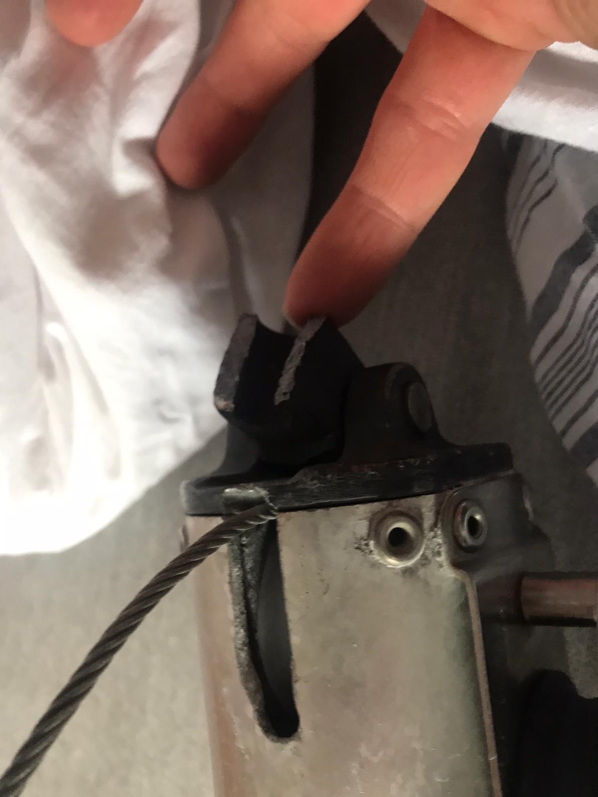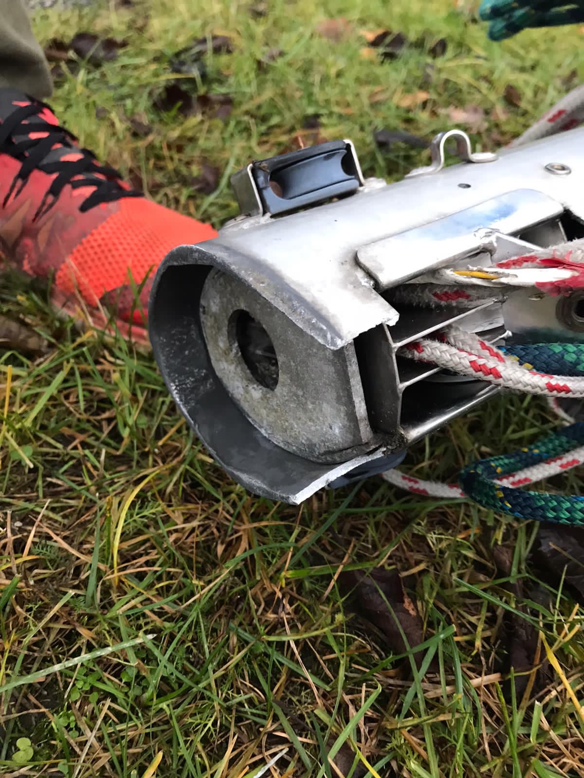 Muuten kaikki ehjää mutta maston jalasta murtui pieni pala irti ja puomin ja maston välinen liitos-osa hajosi.