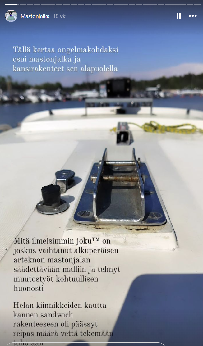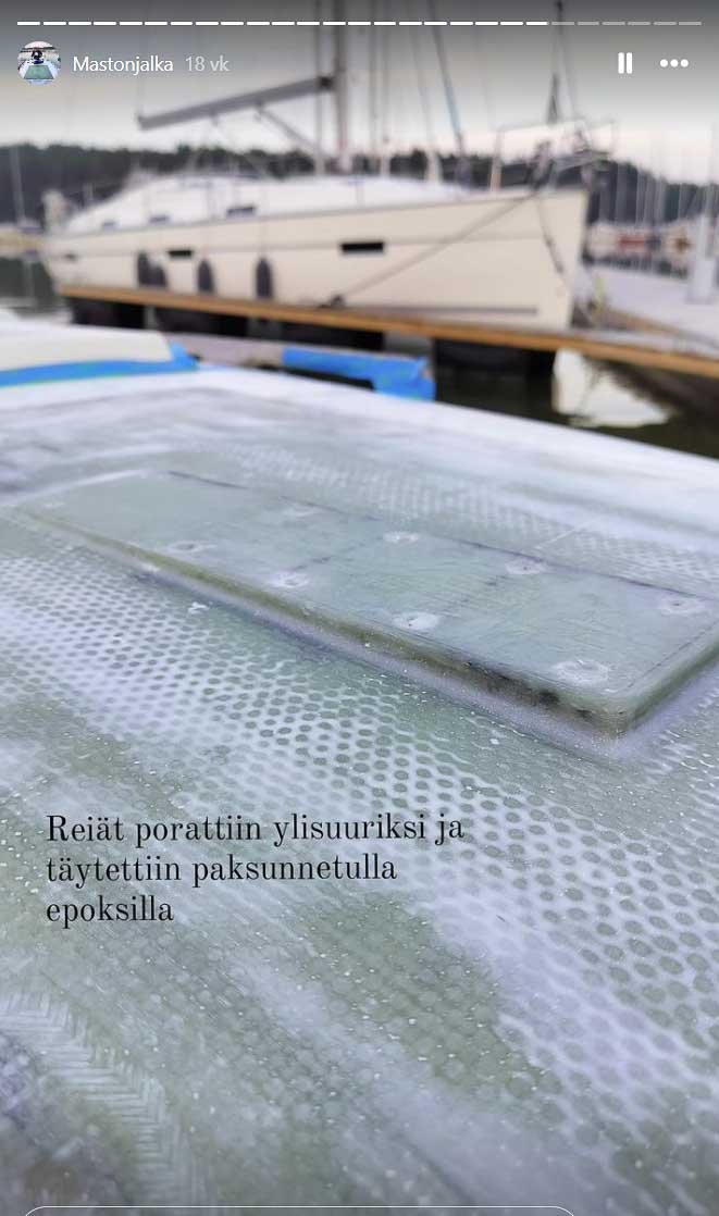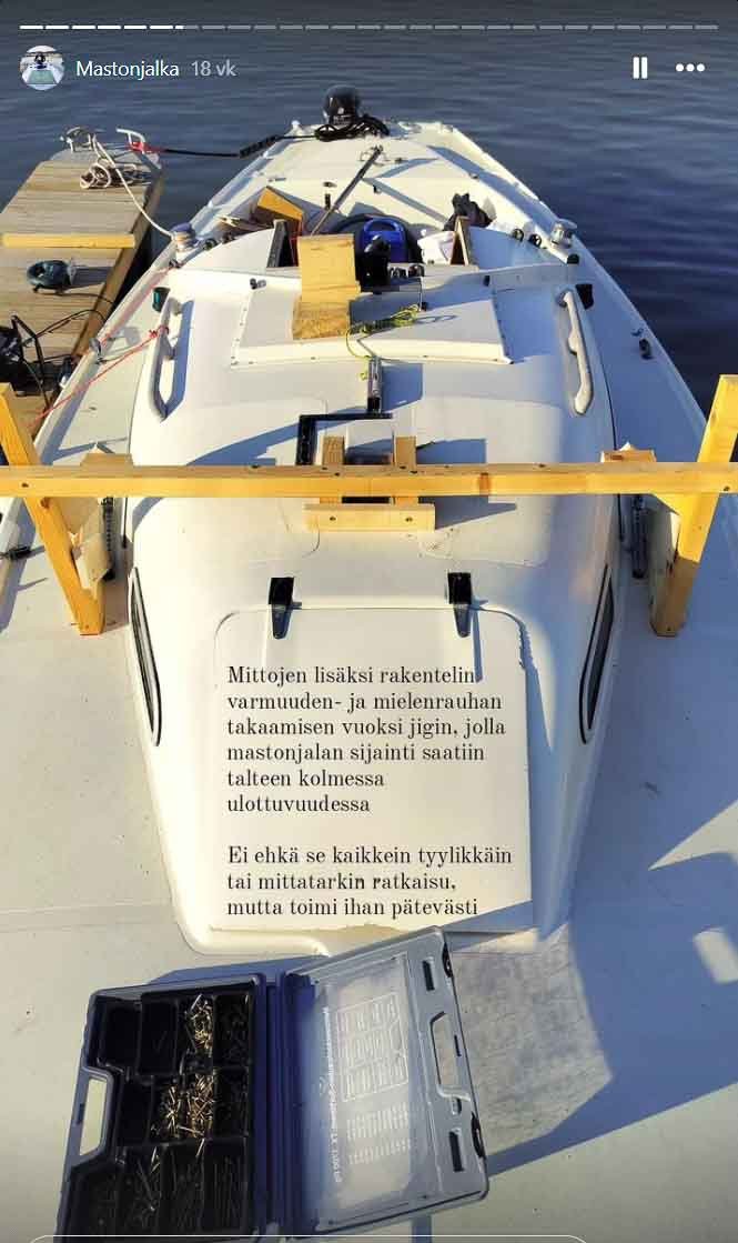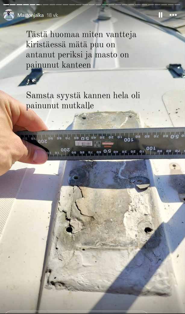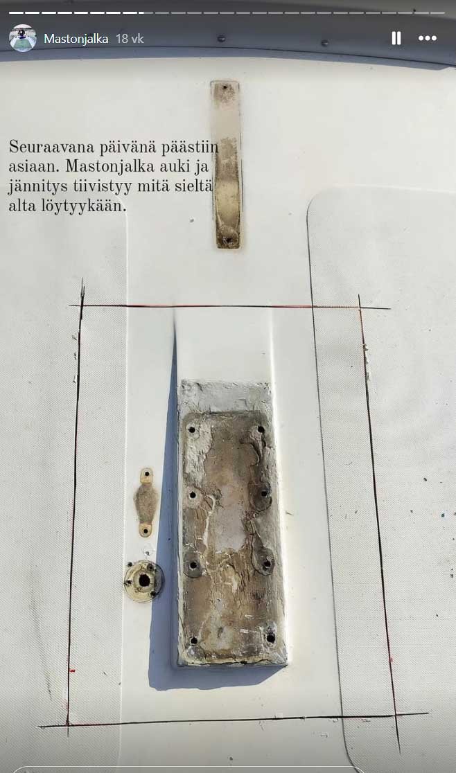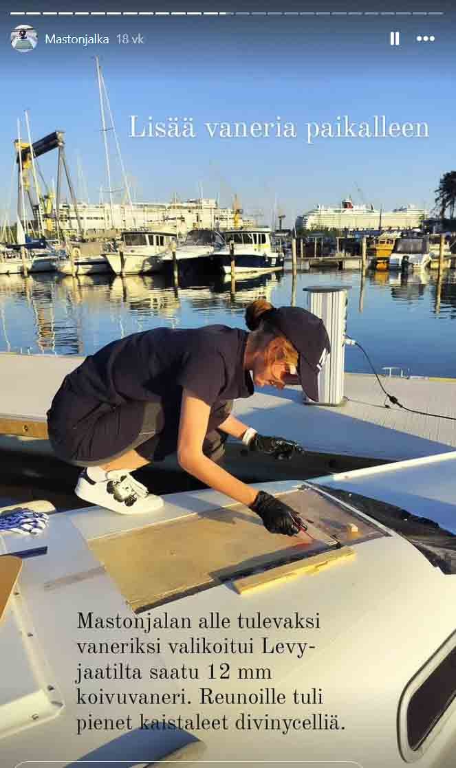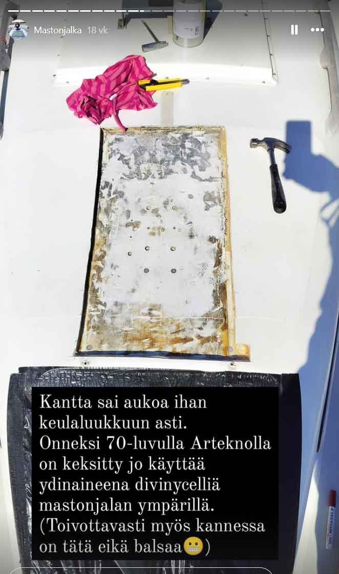 Kontekstiksi kerrottakoot, että kyseinen kansirakenteen korjaaminen mastonjalan alta hoidettiin varsin tiukalla aikataululla. Palkkatöiden, väliaikaisen satamapaikan kalliin hinnan ja päälle puskevien kertausharjoitusten takia aikaa rempan tekemiseen oli tasan viikko. Kaikkeen tekemiseen tässä kannattaa siis suhtautua siten, että tehdyt ratkaisut eivät välttämättä ole niitä parhaita mahdollisia :D