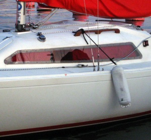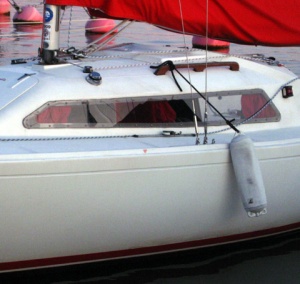Tummat verhot peittävät valoa vaaleampia paremmin, joten tarpeen mukaan voi verhon valita joko pimentäväksi tai pelkästään peittäväksi. Mikäli veneen ikkuna ei ole täysin tummennettu, kannattaa värivalinnassa pohtia myös seuraavaa vanhempien veneiden yksityiskohtaa: kajuutan ja keulapiikin ikkunoiden välissä olevassa tukirakenteessa on ulkopuolella väriraita, esimerkiksi omassa veneessäni se oli aiemmin tumman vihreä. Tämä oli ilmeisesti siitä syystä, että veneen alkuperäinen sisustuskin on vihreä ja ikkuna näyttää jatkuvan yhtenäisenä mikäli siihen laitetaan sisustukseen sopivat vihreät verhot.