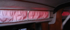 Verhot ovat hyvä yksityisyyttä tuova lisä etenkin matalaan matkaveneeseen. Omakohtaisesti huomasin tämän uusittuani ikkunat kirkkaammiksi joskin sama ilmiö tapahtuu myös tummissa ikkunoissa mikäli sisävalot ovat päällä. Lisäksi kirkkaina kesäkuukausina sopivan tummat verhot toimivat tarvittaessa himmentimenä keskiyön auringolle. Kuvien esimerkeissä kankaan sisäpuoli on valkoinen ja ulkopuoli punainen, mikä on periaatteessa tässä mainittu työmäärä kaksinkertaisena.