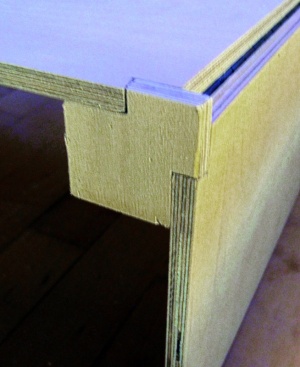 Vaneri on hyvä ja suhteellisen vähän eläessään vääntyvä materiaali, mutta sen kerrosrakenne ei näytä hyvältä petsattuna, joten levyn ja lukkopalojen kantit saa siistimmiksi petsin sävyisellä peittävällä maalilla.